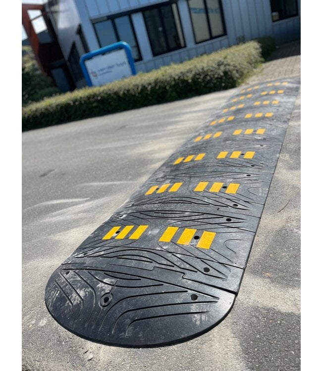 70 mm gummibunga 980 mm djúp 500 mm breið 70 mm høg GG! Boltar til at festa í vegin eru íroknaðir