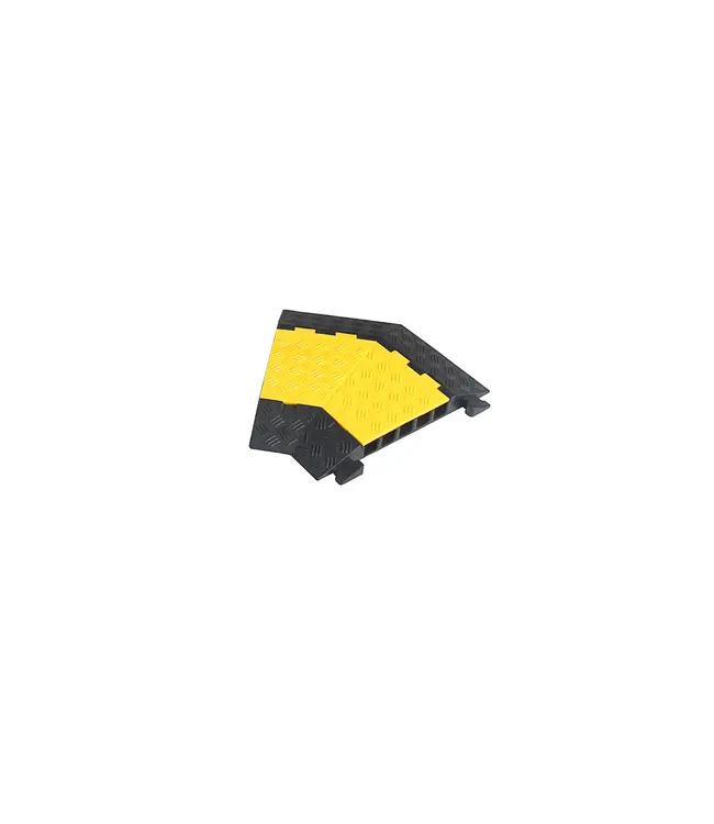 VBT Kaðalverja – hornstykki – 5 rásir Hetta hornstykkið til VBT 5-rása kaðalverju er sniðgivið til trygga og greiða leiðing av kaðlum og slongum – serliga í hornum og vinklum. Við sínum 5 rásum (37 × 32 mm) gevur tað rúmliga pláss til ymisk sløg av kaðlum og verjir teir móti bæði sliti og skaða. Sterka, gula lokið er útgjørt við anti-glíð diamantmynstri, sum tryggjar gott fótafesti og tryggari koyring – eisini í vátum veðri. Hetta ger hana væl egnaða til arbeiðspláss, tiltøk, handilsøki og annað, har ferðsla er nógv. Eginleikar: Serliga gjørt hornstykki, sum passar til VBT 5-rása kaðalverju…