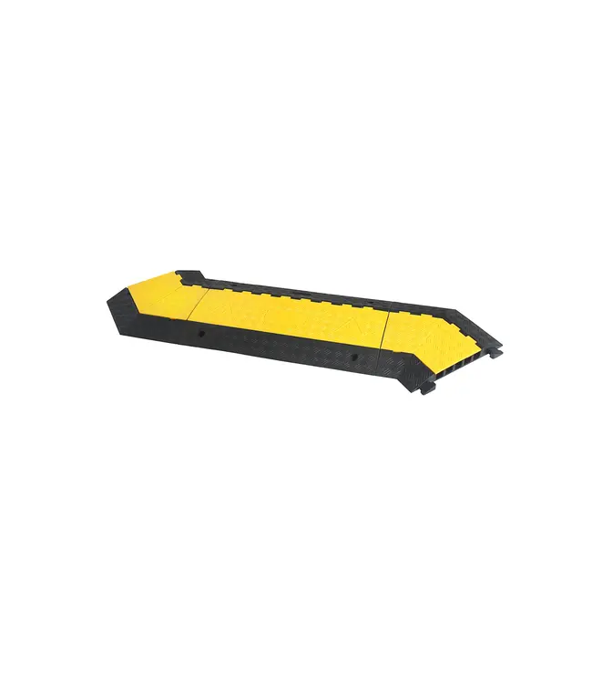 Hornstykki til kaðalverju við 3 rásum Hetta hornstykkið til kaðalverju við 3 rásum og hándtaki er serliga sniðgivið til at leiða leidningar og slangur trygt í ferðslutungum arbeiðsumhvørvum – serliga runt horn. Hornstykkið hevur tvær rásir á 70 × 45 mm og eina rás á 55 × 45 mm, sum gevur rúmligt pláss til ymiskar kaðalar, meðan tað verjir ímóti sliti og skaða. Sterka gula lokið, útgjørt við diamond plate anti-glíð mønstri, tryggjar gott fótafesti og koyritrygd hjá bæði gongufólki og akførum – eisini í vátum veðri. Fyrimunir Serligt hornstykki, hóskandi til kaðalverju við 3 rásum Rásir: 2 × 70…